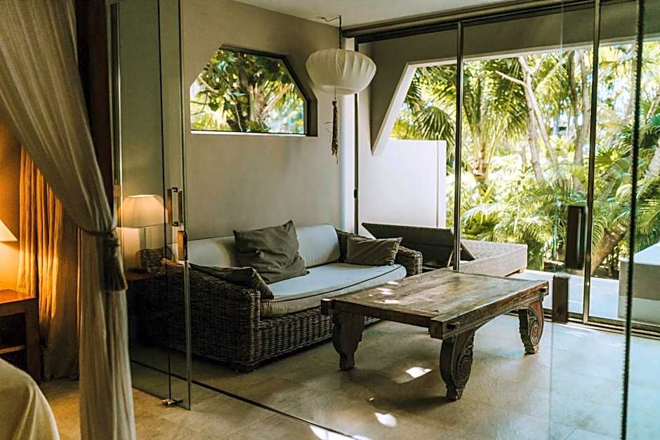 These suites offers a private terrace with plunge pool and views of the garden or sea. Located on the ground floor with tropical view, on the first floor with partial ocean view and on the second floor with full ocean view. Each suite features fine Italian bed linen, a sitting area with cable TV and an iPod dock and an elegant bathroom with deluxe toiletries.